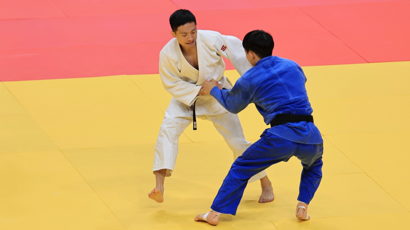 中国公安体育协会运动员马金阳在拳击比赛中挺进决赛